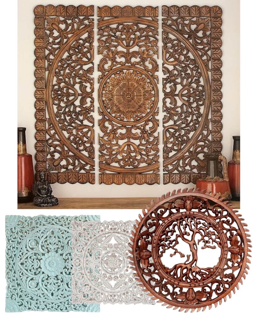 Decorative panels that are made from hand-carved wood. They feature traditional Balinese motifs, adding a touch of exotic elegance to your decor.